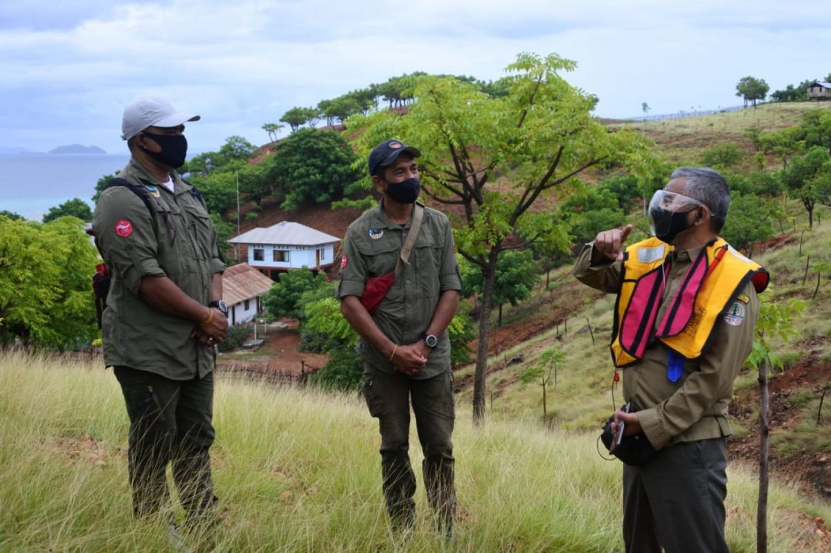 Papagarang, NTT - Inspektur Wilayah II Ir. Sumarto, MM melakukan Ground Check Rehabilitasi Hutan dan Lahan (RHL) di Pulau Papagarang, Senin 5 April 2021. Kegiatan tersebut dihadiri oleh Kepala BPDASHL Benain Noelmina, Kepala Seksi RHL BPDASHL Benain Noelmina, Kepala SPTN Wilayah I dan III BTN Komodo, serta penyedia pelaksana RHL.