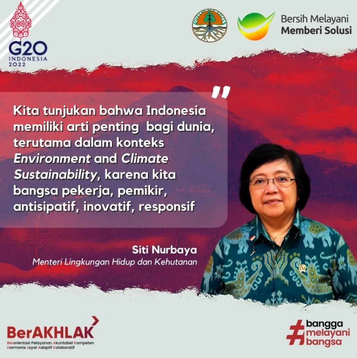 Untuk mendukung penyelenggaraan G20, Kementerian LHK pada tanggal 1 Maret 2022 telah melaksanakan Kick Off G20 on Environment Deputies Meeting-Climate Sustainable Working Group (EDM-CSWG): Leading for Sustainability. Kegiatan ini merupakan langkah awal dimulainya berbagai kegiatan terkait isu Perubahan Iklim dan Pemulihan Lingkungan.