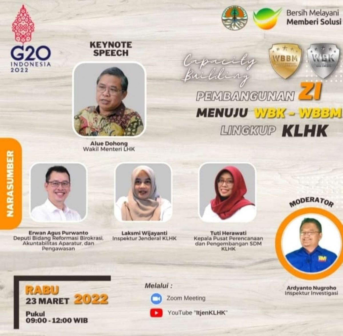 Sebagai bentuk penguatan komitmen seluruh jajaran KLHK dalam membangun ZI menuju WBK/WBBM, Itjen Kementarian LHK akan menyelenggarakan capacity building dengan mengundang seluruh satuan kerja KLHK baik di pusat maupun di daerah.