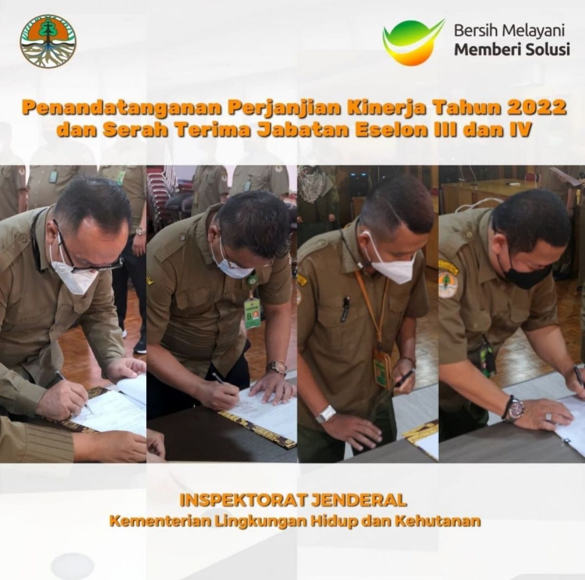 Acara penandatangan perjanjian kinerja sebagai bentuk peneguhan komitmen bersama seluruh Aparatur Itjen KLHK. Dalam sebuah organisasi modern, jabatan struktural bukan hanya sekedar merit namun sebuah pengabdian untuk selalu menjadi learning organization.