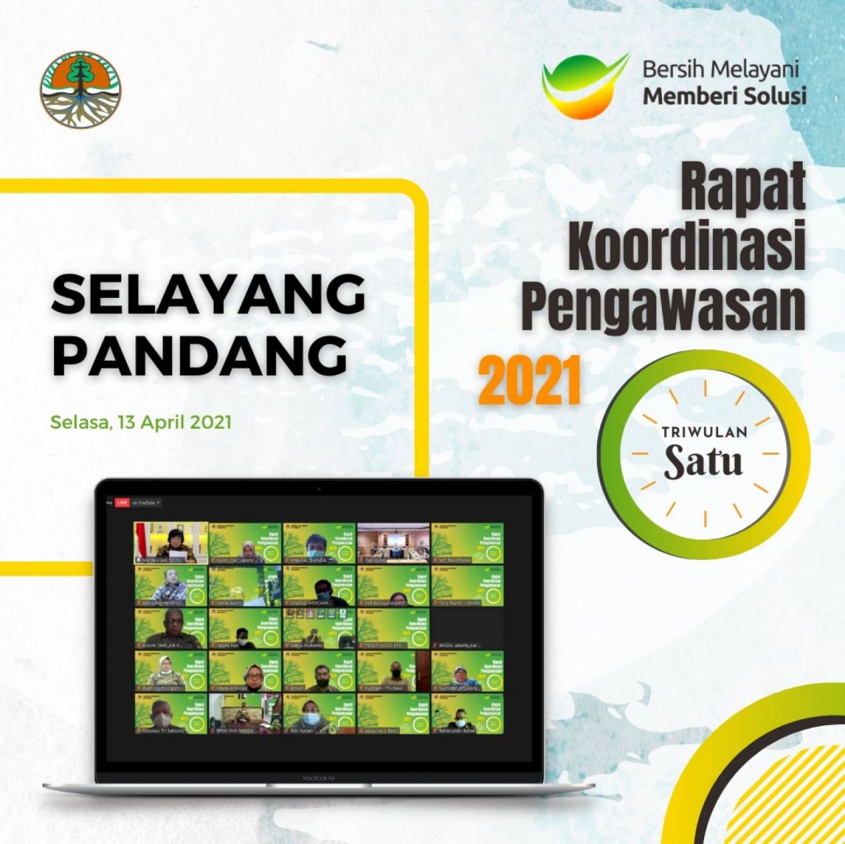 Rapat Koordinasi Pengawasan (Rakorwas) pada hari Selasa, 13 April 2021 sangat penting untuk kita semua, berada dalam satu forum pengawasan, yang berasosiasi dengan banyak dimensi dalam manajemen pelaksanaan tugas kita dibawah organisasi KLHK.